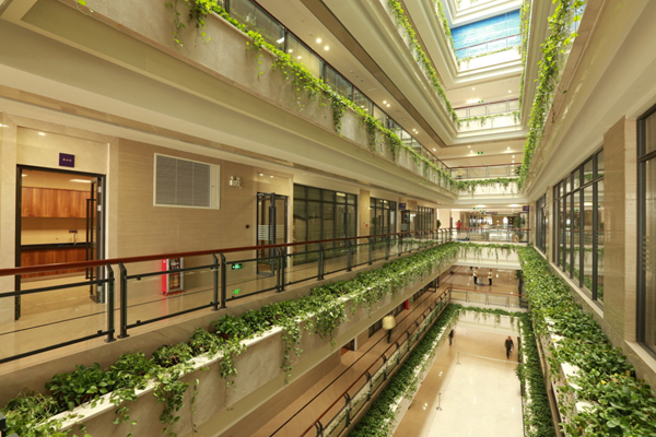 作為佛山順德的地標(biāo)性建筑,碧桂園總部辦公大樓是一棟以綠色生態(tài)為設(shè)計(jì)主題,通過(guò)錯(cuò)落有致的綠化陽(yáng)臺(tái)以及主入口森林走廊的營(yíng)造,精心打造的綠色節(jié)能生態(tài)辦公建筑。綠色管理思路在這棟生態(tài)辦公大樓里得到體現(xiàn)。其中,建筑自遮陽(yáng)及節(jié)能門(mén)窗設(shè)計(jì)是一大亮點(diǎn)。錯(cuò)落有致布滿綠植的陽(yáng)臺(tái)將直射陽(yáng)光轉(zhuǎn)化為漫射光,搭配高透光Low-E中空玻璃,在阻擋太陽(yáng)光輻射熱的同時(shí),保留可見(jiàn)光波段進(jìn)入室內(nèi),有效降低室內(nèi)空調(diào)與照明能耗。