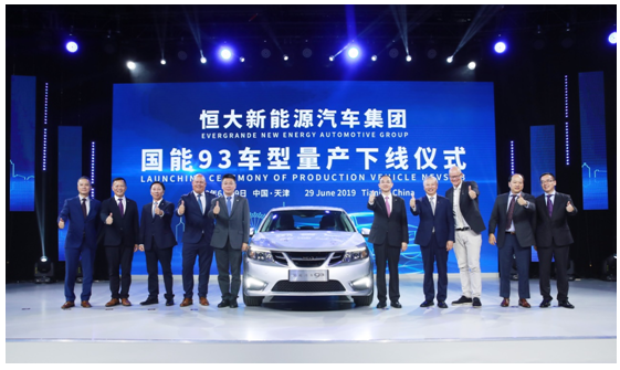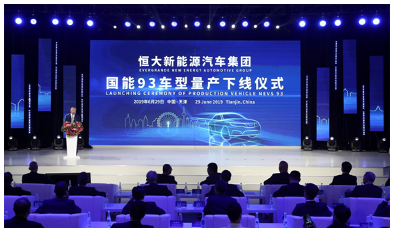 6月29日,恒大新能源汽車集團(tuán)國能93車型量產(chǎn)下線儀式在天津舉行。