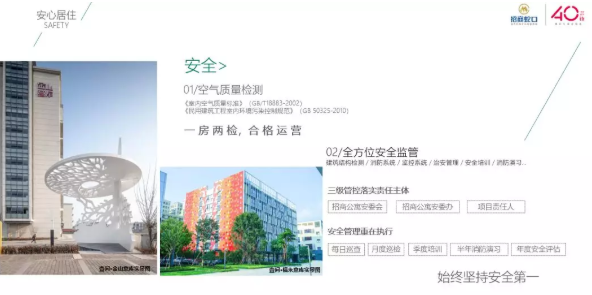 活動現(xiàn)場中,招商公寓副總經(jīng)理張敏先生講到關(guān)于關(guān)于公寓業(yè)務(wù)的現(xiàn)狀與發(fā)展,截至2019年上半年,公寓項目總體規(guī)模近100萬㎡,約2.5萬間,項目布局北上廣深、天津、大連、重慶、武漢、南京、杭州、蘇州等16個重點城市。尤其是在公寓安全管理方面,張敏先生重點表示:“客戶的安全與健康是第一位的,我們始終堅持安全、品質(zhì)與服務(wù),不敢有一絲馬虎。在空氣質(zhì)量方面,我們嚴(yán)格要求一房兩檢,住建部標(biāo)準(zhǔn):GB 50325《民用建筑工程室內(nèi)環(huán)境污染控制規(guī)范》,衛(wèi)生部標(biāo)準(zhǔn):GB/T18883《室內(nèi)空氣質(zhì)量標(biāo)準(zhǔn)》,所有房間交付客戶前進(jìn)行空氣治理與檢測合格。在安全管理方面,通過三級管控形式落實安全責(zé)任主體,安全重在執(zhí)行、貴在堅持,每天、每月、每季度、每半年、每年,從檢查、培訓(xùn)、演習(xí)、安全評估等多方面落實到位,安全與健康是我們堅守的底線”。