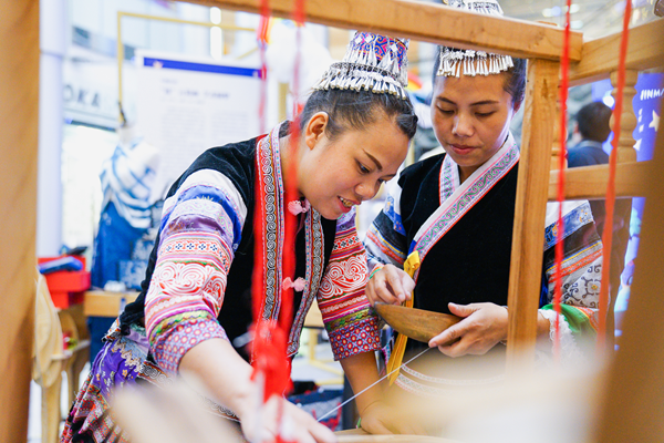 活動上,來自深山集市的繡娘不僅展示了各種手工技藝,還頗為有心地為各位嘉賓準備了繡有傳統(tǒng)紋樣的手環(huán),以愛串聯(lián)所有。繡娘們說,她們很高興有這個機會走出大山,來到城市里向大家展示她們的文化。