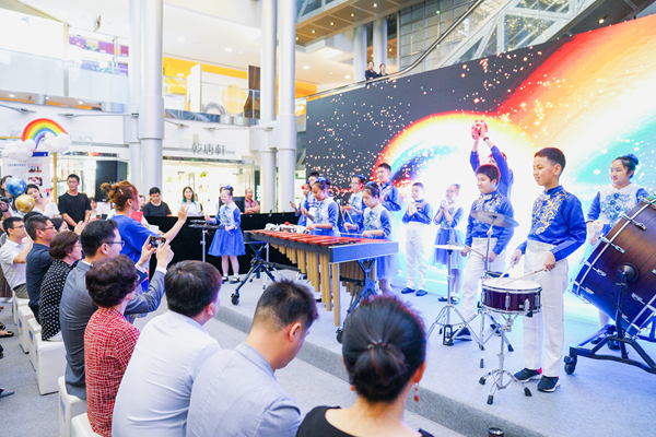 啟動儀式當天除了有豐富多彩的活動之外,金茂商業(yè)的志愿者們穿梭忙碌于人群中,向大家介紹展品、分享公益故事;上海小瑩星的小朋友們也帶來了表演《最好的未來》;同時還有由特殊兒童組成的“星航線打擊樂團”的專場打擊樂表演——這群特殊兒童們在演奏過程中的自信和專注打動了在場的每個人;金茂88層觀光廳更安排了志愿者們和這些表演的孩子們登上金茂大廈88層,帶他們一覽群秀。