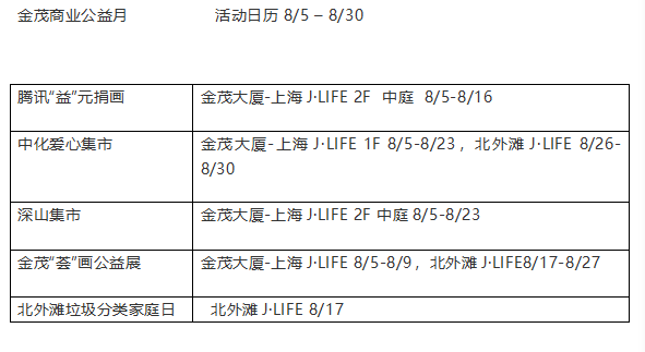 另外,在公益月期間,大家除了能在金茂大廈看畫展逛集市之外,還可以參加金茂商業(yè)于8月17日在北外灘J·LIFE舉辦垃圾分類家庭日的活動,希望能有更多的人可以加入進來關注兒童成長和環(huán)保事業(yè)。