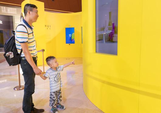 商場(chǎng)M層中庭的互動(dòng)藝術(shù)裝置尤為吸睛,以“∞”(無(wú)限)為主要意象,串聯(lián)8塊互動(dòng)屏幕,當(dāng)觀眾佇足感應(yīng),屏幕內(nèi)鏡像將成為藝術(shù)家筆下的手偶角色,化身一個(gè)個(gè)擬人之手,創(chuàng)作自己的“愛(ài)情“、“友情”、“親情”視頻故事,紀(jì)念“你我”之間美好的關(guān)系。