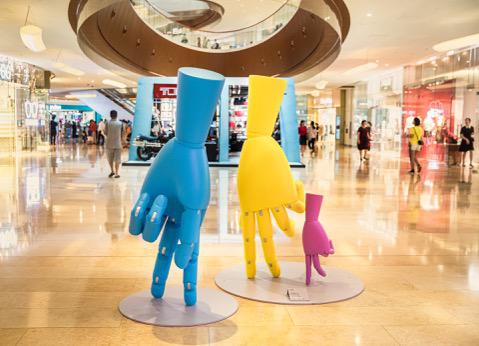圖片9-13:布置于其他樓層的HANDS主題藝術(shù)裝置(L1東廣場(chǎng)、L3南玻璃盒等)