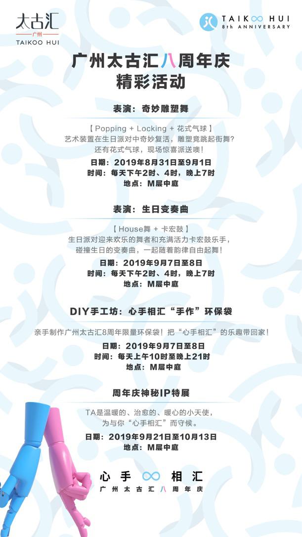 更多廣州太古匯8周年慶典系列活動(dòng),即將陸續(xù)在線上線下同步開(kāi)展,邀廣州市民一起分享和創(chuàng)造更多在廣州太古匯的“心手相匯”瞬間: