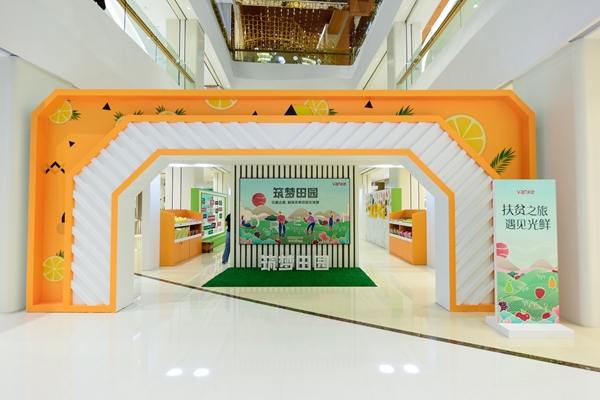 筑夢田園公益展現(xiàn)場,主辦方在供銷e社訂購了扶貧地區(qū)的水果產(chǎn)品,并通過彩繪涂鴉墻、水果語錄墻、水果自白詩等多個創(chuàng)意裝置,全方位介紹了萬科公益扶貧項(xiàng)目的內(nèi)容?;顒悠陂g,很多商場顧客走進(jìn)展區(qū)體驗(yàn),并在手機(jī)上掃碼下單購買產(chǎn)區(qū)水果,支持扶貧產(chǎn)業(yè)。