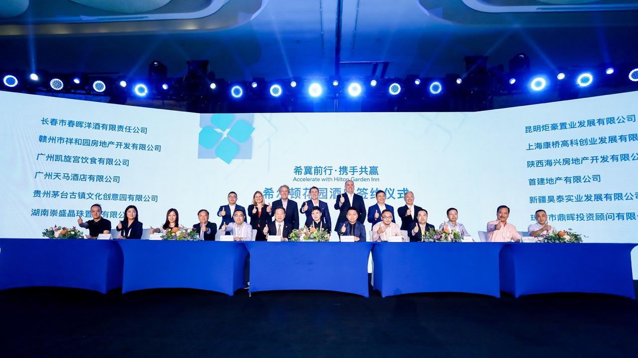 現(xiàn)場,希爾頓與長春市春暉洋酒有限責任公司、贛州市祥和園房地產(chǎn)開發(fā)有限公司、廣州凱旋宮飲食有限公司、廣州天馬酒店有限公司、貴州茅臺古鎮(zhèn)文化創(chuàng)意園有限公司、湖南崇盛晶珠置業(yè)有限公司、昆明炬豪置業(yè)發(fā)展有限公司、上??禈蚋呖苿?chuàng)業(yè)發(fā)展有限公司、陜西海興房地產(chǎn)開發(fā)有限公司、首建地產(chǎn)有限公司、新疆昊泰實業(yè)發(fā)展有限公司、珠海市鼎暉投資顧問有限公司達成合作意向,確認新開12家全新版希爾頓花園酒店。