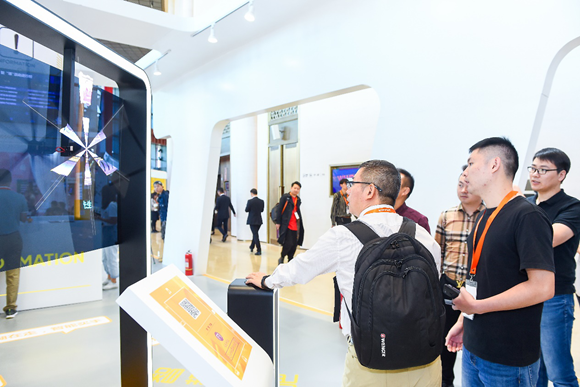 邁步進(jìn)入國(guó)際會(huì)展中心,左手邊的“先見(jiàn) 新消費(fèi)——sMall商場(chǎng)數(shù)字化產(chǎn)品體驗(yàn)館”便吸引了參會(huì)者的目光。從體驗(yàn)館入口處的點(diǎn)陣磁力墻、“子彈時(shí)間”3D攝像技術(shù),到體驗(yàn)館內(nèi)的全息游戲機(jī)、中庭大屏互動(dòng)游戲,再到臨近出口的人臉尋車(chē)演示、無(wú)感停車(chē)演示沙盤(pán),都讓人仿佛置身未來(lái)科幻場(chǎng)景之中。