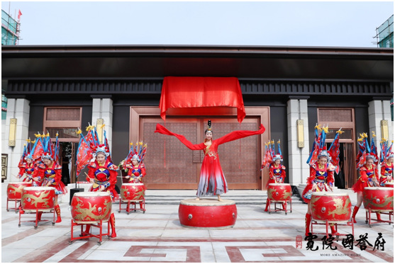 盛會當天,一曲激情昂揚的盛世鼓舞為盛會驚艷啟幕,鏗鏘有力的激情鼓點、大開大闔的唐韻風情,彰顯了寬院·國譽府旗開新國門、升級人居的恢弘氣魄。