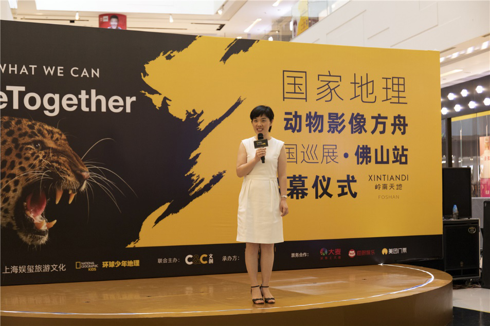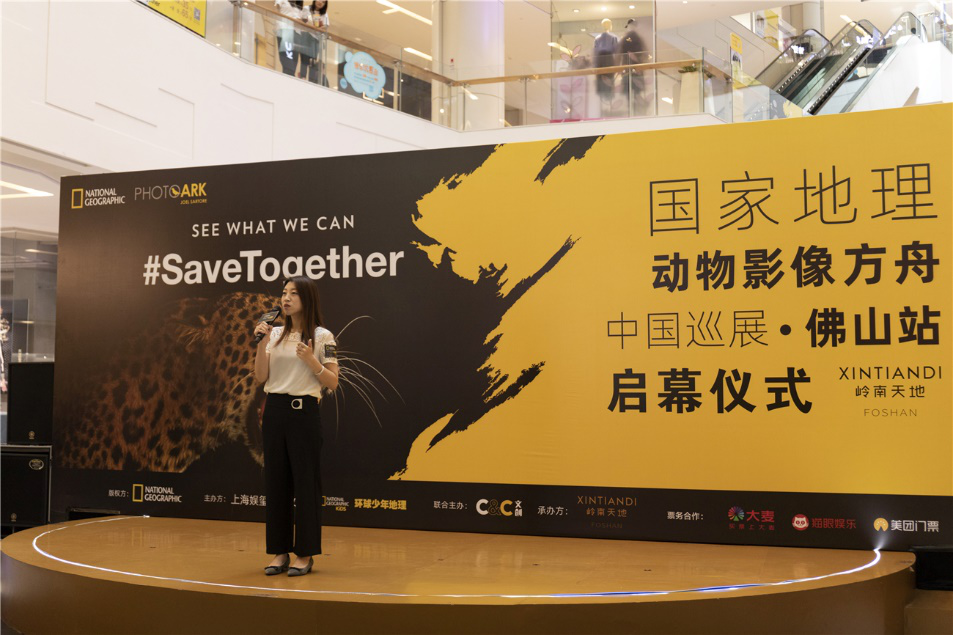 9月20日,國(guó)家地理動(dòng)物影像方舟中國(guó)巡展在佛山嶺南天地開(kāi)啟了全國(guó)第二站暨華南首站的展出。啟幕儀式當(dāng)天,國(guó)家地理中國(guó)區(qū)市場(chǎng)及新媒體總監(jiān)李丹女士、國(guó)家地理少兒版中文版《環(huán)球少年地理》執(zhí)行主編呂潔女士、中國(guó)新天地佛山項(xiàng)目商業(yè)管理總監(jiān)雷艷卿女士、杭州希聯(lián)文化創(chuàng)意有限公司董事長(zhǎng)陶潔女士、上海娛璽旅游文化領(lǐng)導(dǎo)單東升先生親臨現(xiàn)場(chǎng),一同為本次展覽揭幕,并呼吁大家關(guān)注展覽,響應(yīng)保護(hù)瀕危動(dòng)物。