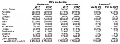 下圖來自美國地質(zhì)勘探局的鐵礦石年度報(bào)告2019版本,