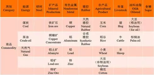 以中國大宗商品價(jià)格指數(shù)為例,包括以下類別,總共9大類26種商品