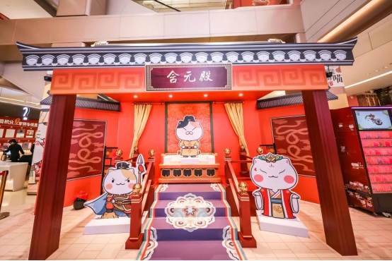 在10月1日至31日的展覽期間,保利廣場(chǎng)打造了四個(gè)大唐喵喵主題的互動(dòng)場(chǎng)景:皇帝舉行外朝大典的含元殿、大唐喵們居住的喵宅、書香濃郁的西西弗書院、昌盛繁榮的長(zhǎng)安街,每個(gè)場(chǎng)景都古風(fēng)滿滿,讓人有種一秒穿越回到大唐盛世的快感。