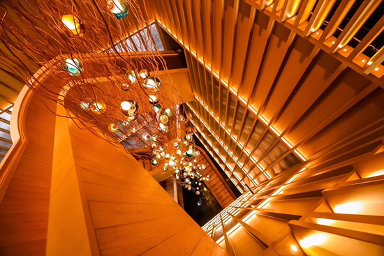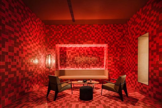因此,如恩Neri&Hu在中興路一號(hào)Oriental One的設(shè)計(jì)上,如以往般超越傳統(tǒng)設(shè)計(jì)界限,從展示中心內(nèi)別具匠心燈籠裝置便可見一斑,幾種不同的主要色彩堆砌出如恩對(duì)東方摩登生活的理解,金磚、仿造圍爐的金箔、泳池的藍(lán)、運(yùn)動(dòng)空間的紅……,如恩糅合了諸多的對(duì)立元素,圍合與開放、明與暗、精細(xì)與厚重,展現(xiàn)東方氣質(zhì)的內(nèi)斂和親切的庇護(hù)感,繪寫出友好舒適的空間。