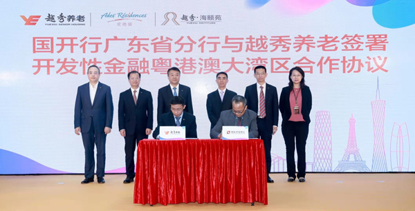 隨后,越秀養(yǎng)老與國家開發(fā)銀行簽署《開發(fā)性金融粵港澳大灣區(qū)合作協(xié)議》。根據(jù)協(xié)議,國開行將憑借其全面優(yōu)勢,與越秀養(yǎng)老共同探索符合現(xiàn)階段國情的養(yǎng)老金融服務(wù),并計(jì)劃2019至2023年期間,為越秀養(yǎng)老提供30億元人民幣的金融產(chǎn)品,助力越秀養(yǎng)老推動健康養(yǎng)老事業(yè)發(fā)展。
