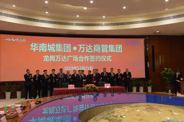 2019年12月25日下午,華南城集團(tuán)與萬達(dá)商管集團(tuán)在深圳華南城總部大樓舉行深圳龍崗萬達(dá)廣場項(xiàng)目合作協(xié)議簽約儀式。萬達(dá)集團(tuán)總裁助理沈景琰、華南城集團(tuán)董事局主席鄭松興、華南城集團(tuán)總裁趙立東等出席本次簽約,深圳市龍崗區(qū)工業(yè)和信息化局副局長孫愷鵬、平湖街道黨工委書記張志華、街道辦主任劉慶等領(lǐng)導(dǎo)和嘉賓進(jìn)行了見證。