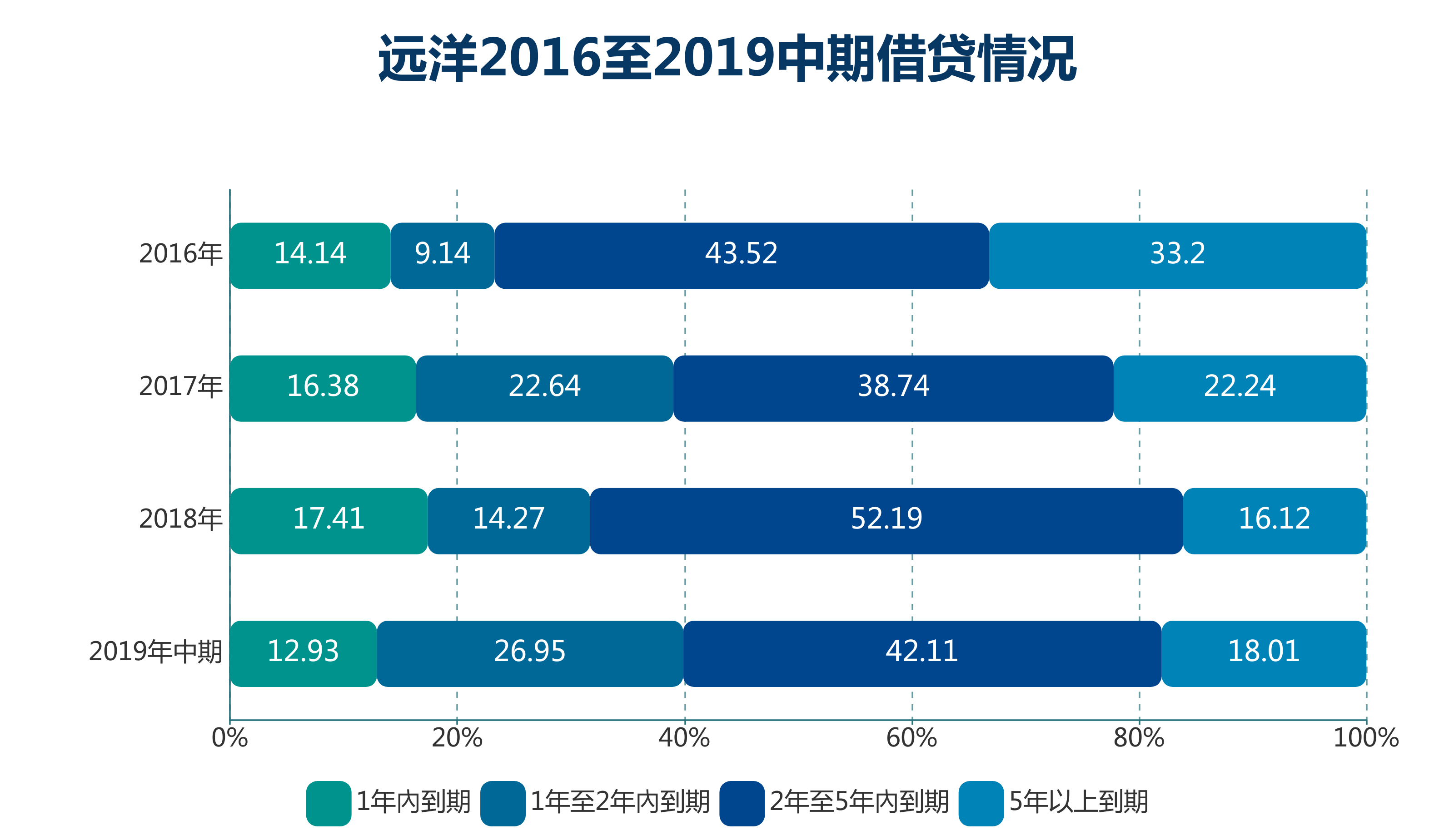 短期債務方面,2018年末,遠洋1年內(nèi)到期債務升至歷史最高點的154.25億元,1年至2年內(nèi)到期債務升至歷史第二高點的126.37億元。