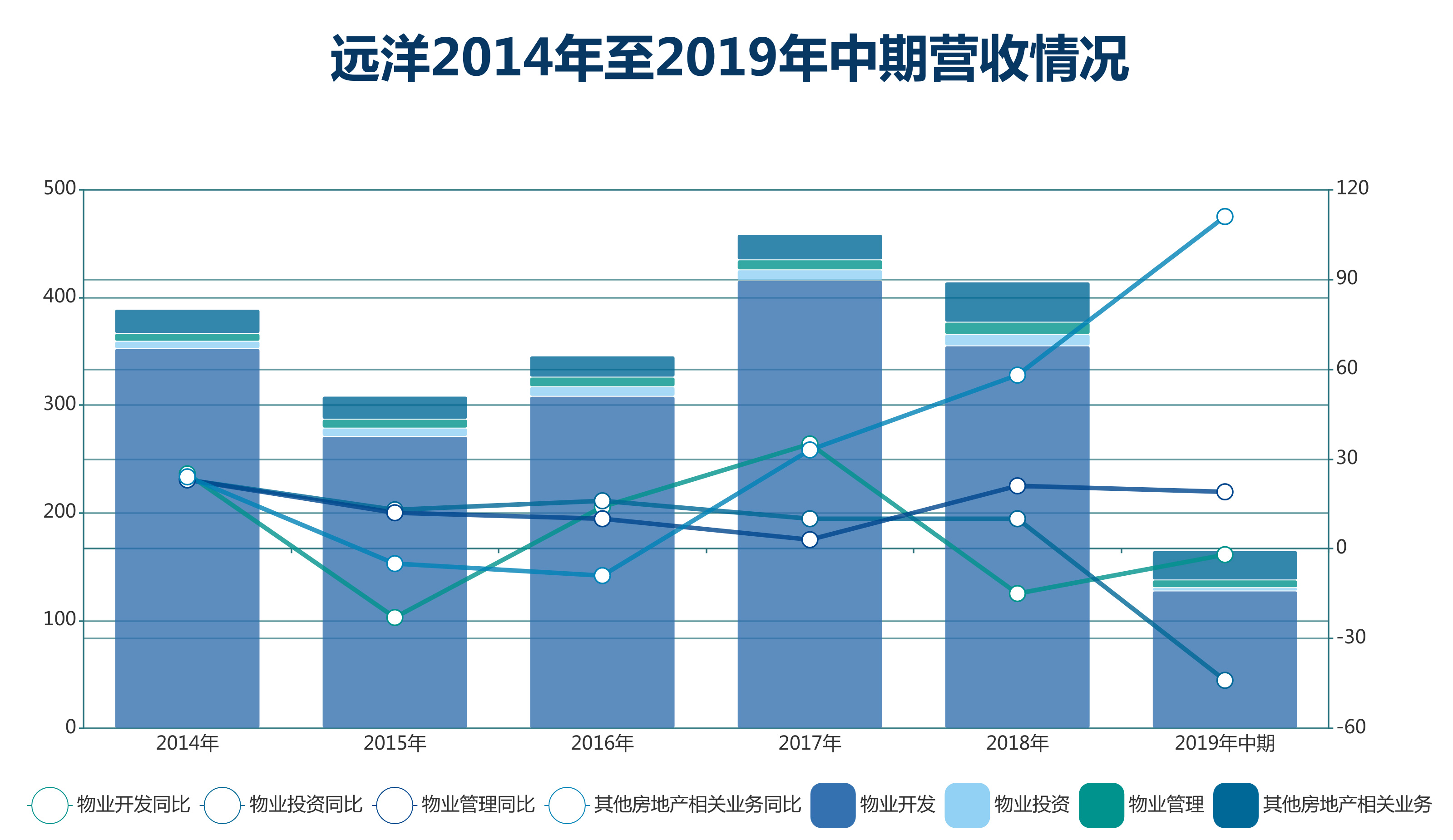 2019年上半年,遠洋錄得合同銷售額600.8億元,同比增長33%,錄得營業(yè)收入164.74億元,同比增長7%。