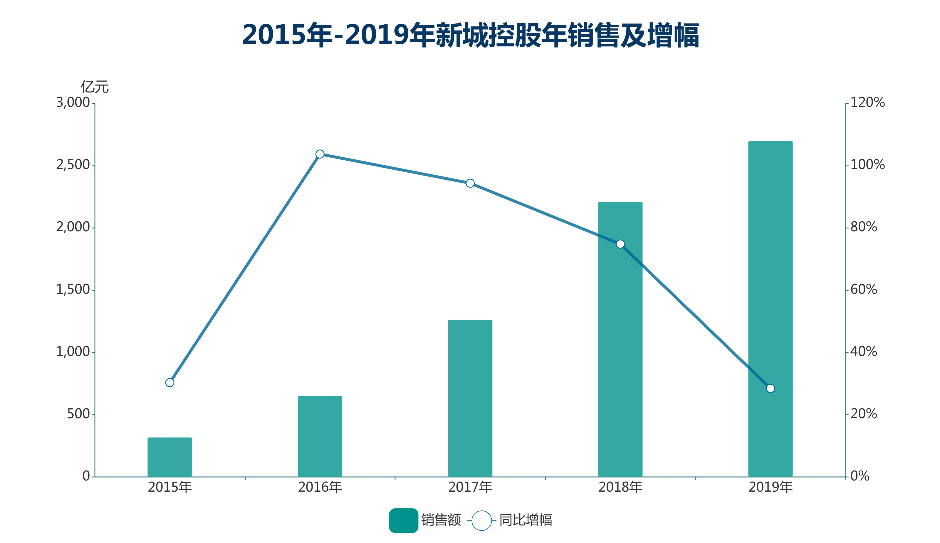 作為行業(yè)最突出的追趕者,新城2016年開始將布局向全國推開,然后用4年時(shí)間令銷售額從2015年320億元躍升至2019年逼近3000億,并連續(xù)兩年位居行業(yè)前八。