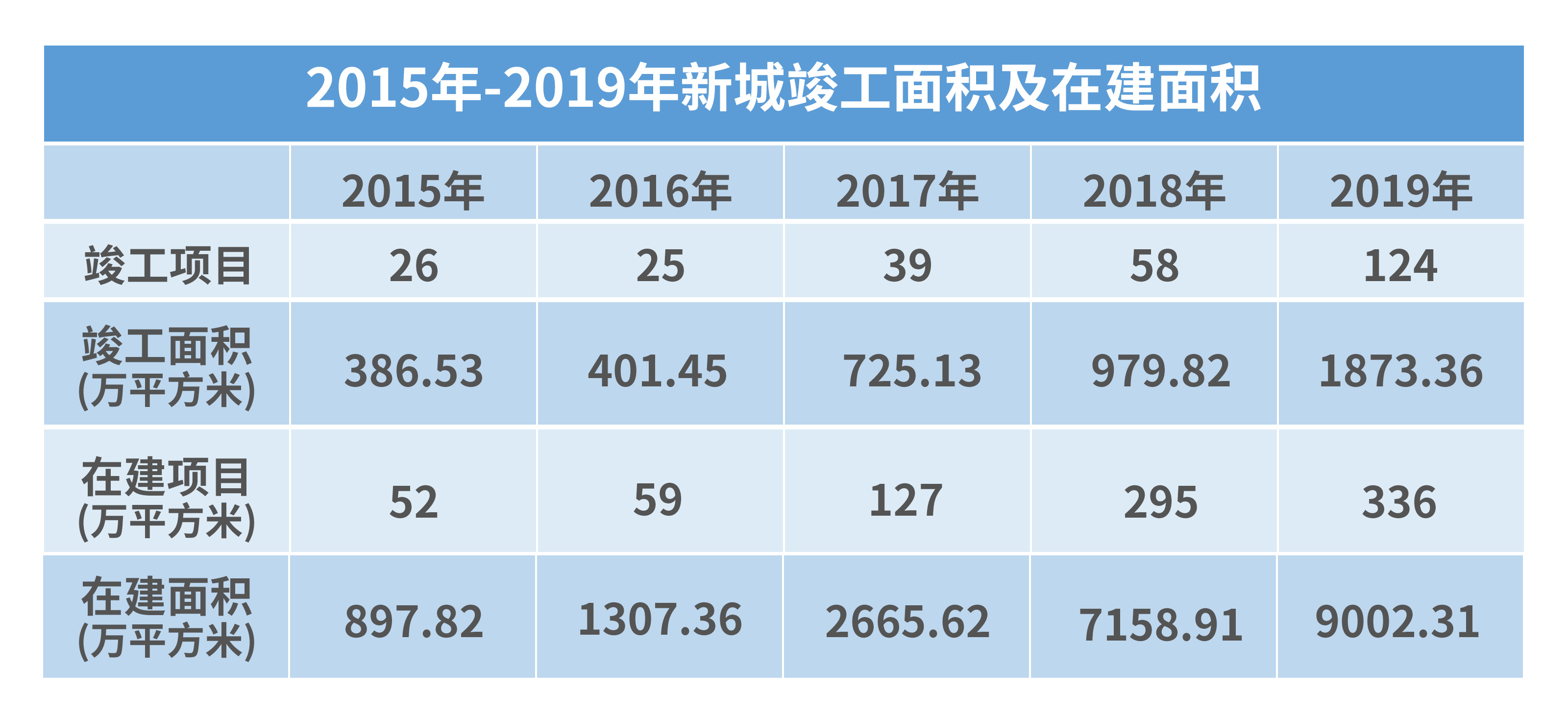 數(shù)據(jù)顯示,2015年-2019年,新城無論是竣工面積還是在建面積都呈現(xiàn)快速上漲的趨勢。其中,2016-2019年,新城開發(fā)項(xiàng)目的竣工面積同比分別增長3.86%、80.63%、35.12%和91.19%;在建面積方面,2016年-2018年分別同比增長45.61%、103.89%和168.56%。