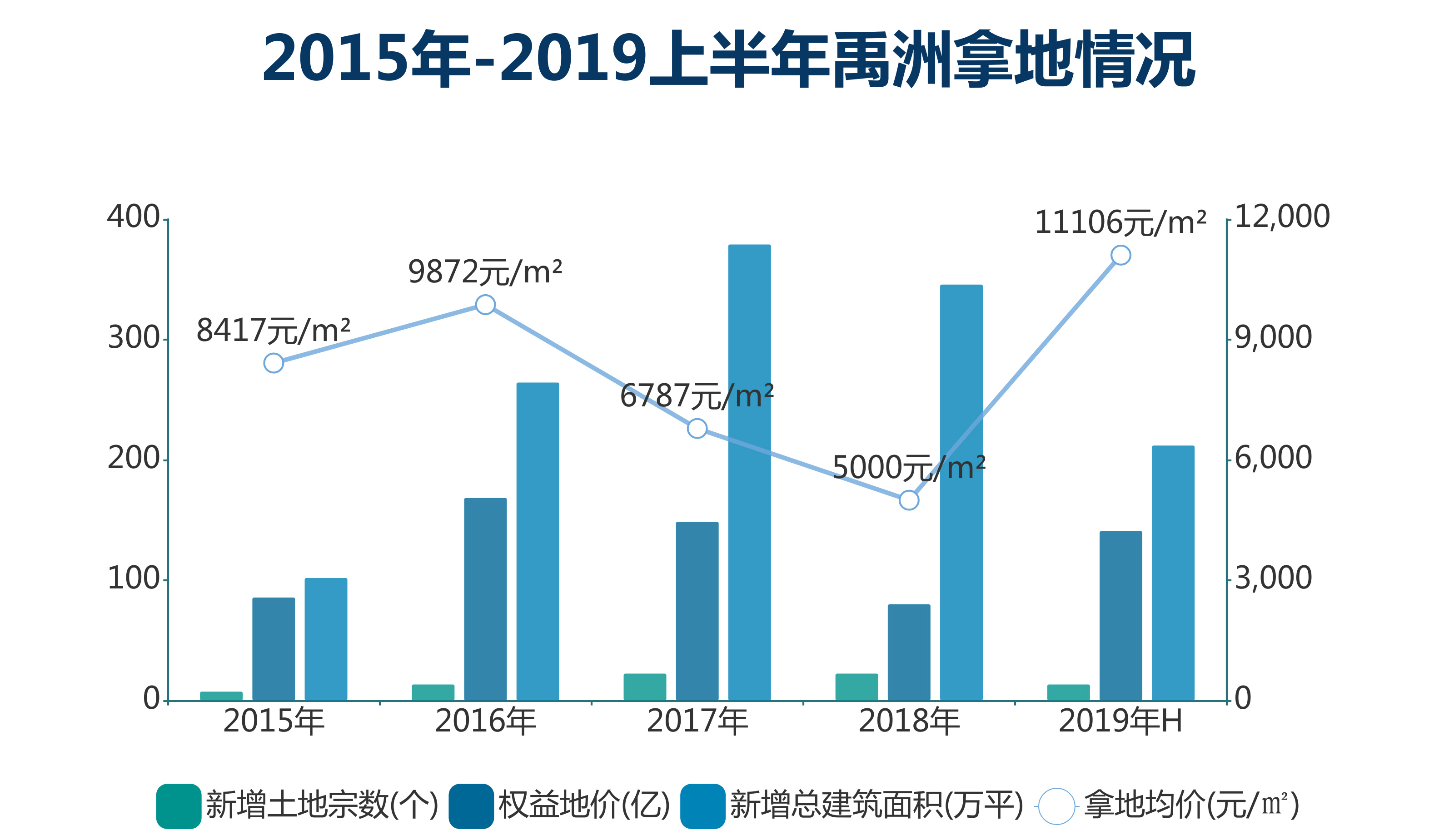 也正因此,禹洲2019上半年拿地成本開始上升,拿地均價達到了近幾年的高點,為每平方米11106元,而2018全年拿地均價僅為每平方米5000元。