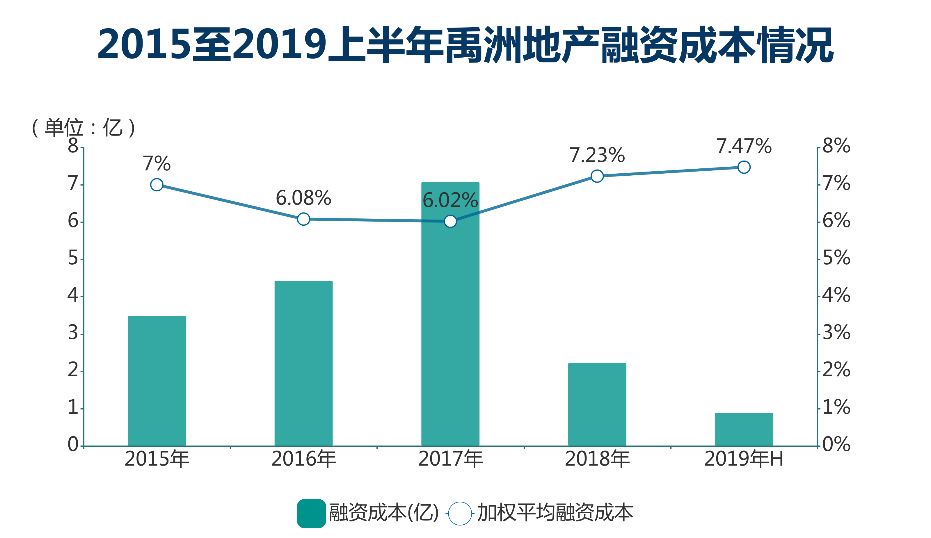 此外,在資本市場摸爬打滾這十年里,禹洲同樣善用各類融資工具,自2015年至2019上半年,加權(quán)平均融資成本維持在6-7.5%之間,在近三年里持續(xù)走低。