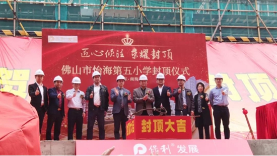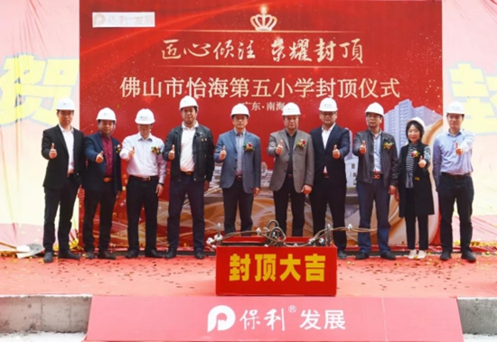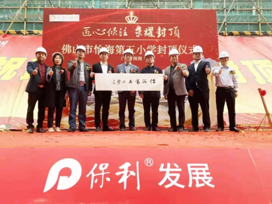 下午16:00時,封頂儀式正式開啟,保利和悅濱江代表及桂城教育局等人齊聚現(xiàn)場,共同見證了這具有歷史性的榮耀時刻。