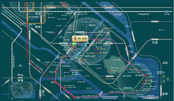 項(xiàng)目所在的蕉門河片區(qū)是南沙區(qū)府所在地,在不到3平方公里的土地上,集聚著南沙超80%的高端配套資源,政務(wù)、商業(yè)、人文藝術(shù)、企業(yè)總部四大中心疊加,在如此地段,星河·東悅灣可謂含著金鑰匙出生。