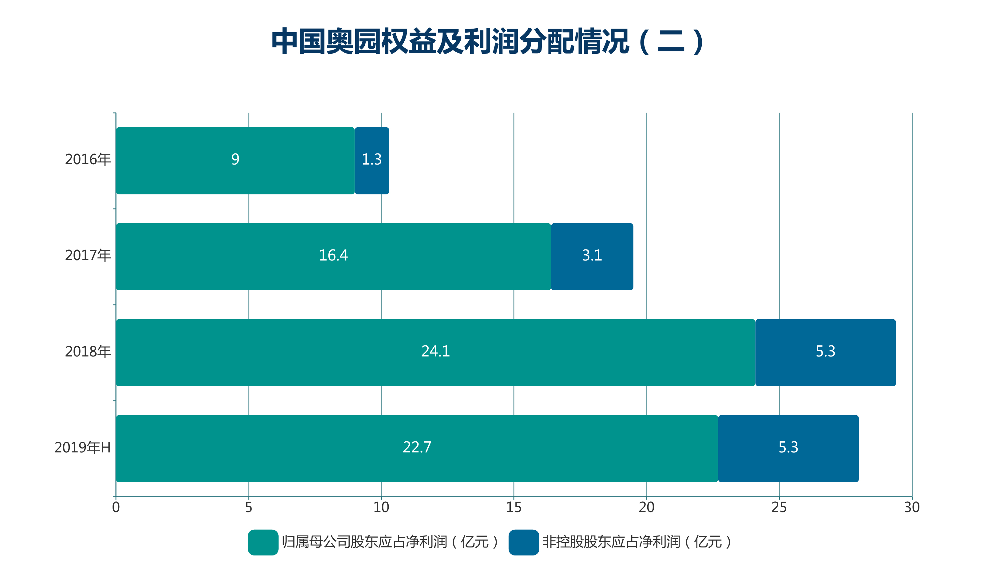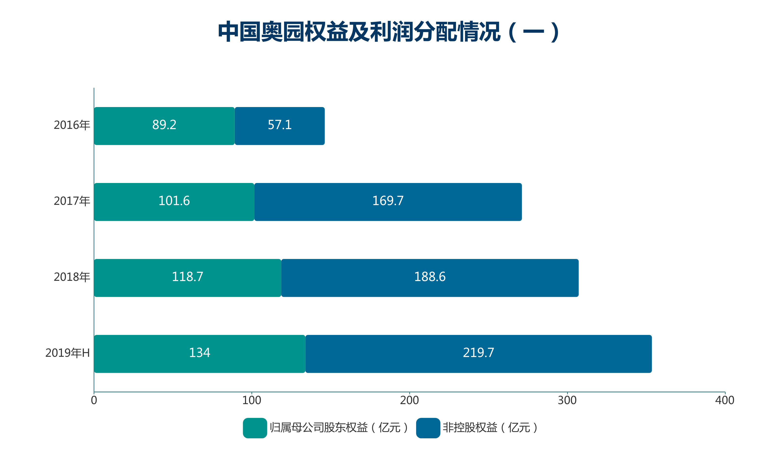 截至2019年6月末,奧園少數(shù)股東權(quán)益已經(jīng)達到219.7億元,超過歸屬母公司股東權(quán)益85.7億元,占總權(quán)益比例從2018年末的61.4%上升至62.1%。但這批小股東只能分得約5.3億元利潤,不足歸屬母公司股東利潤的四分之一。