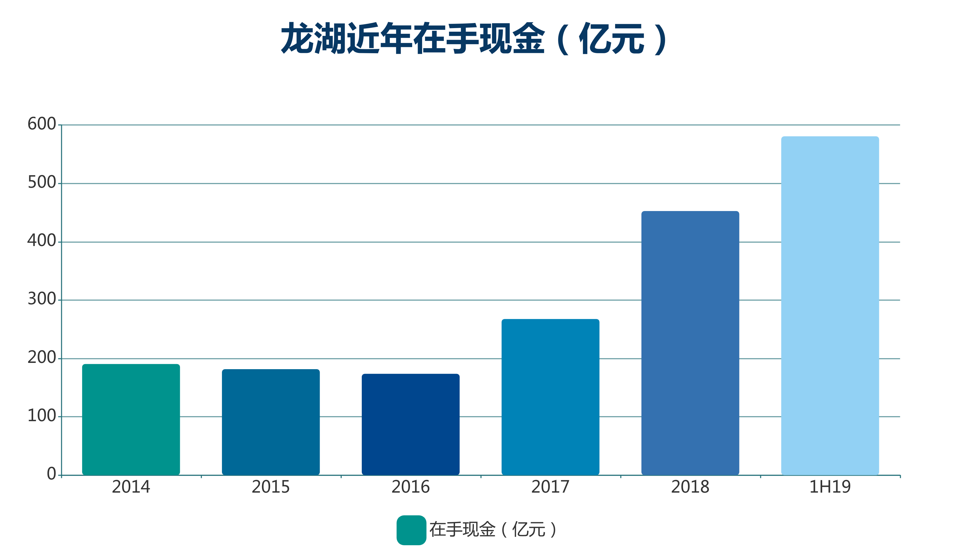 據(jù)觀點新媒體了解,在資產(chǎn)規(guī)模擴大的同時,龍湖近幾年在手現(xiàn)金儲備大幅攀升,由2014年190.4億元升至2018年的452.6億元。2019上半年,這個數(shù)字達到了580.7億元,較2018年末增加128.1億元。