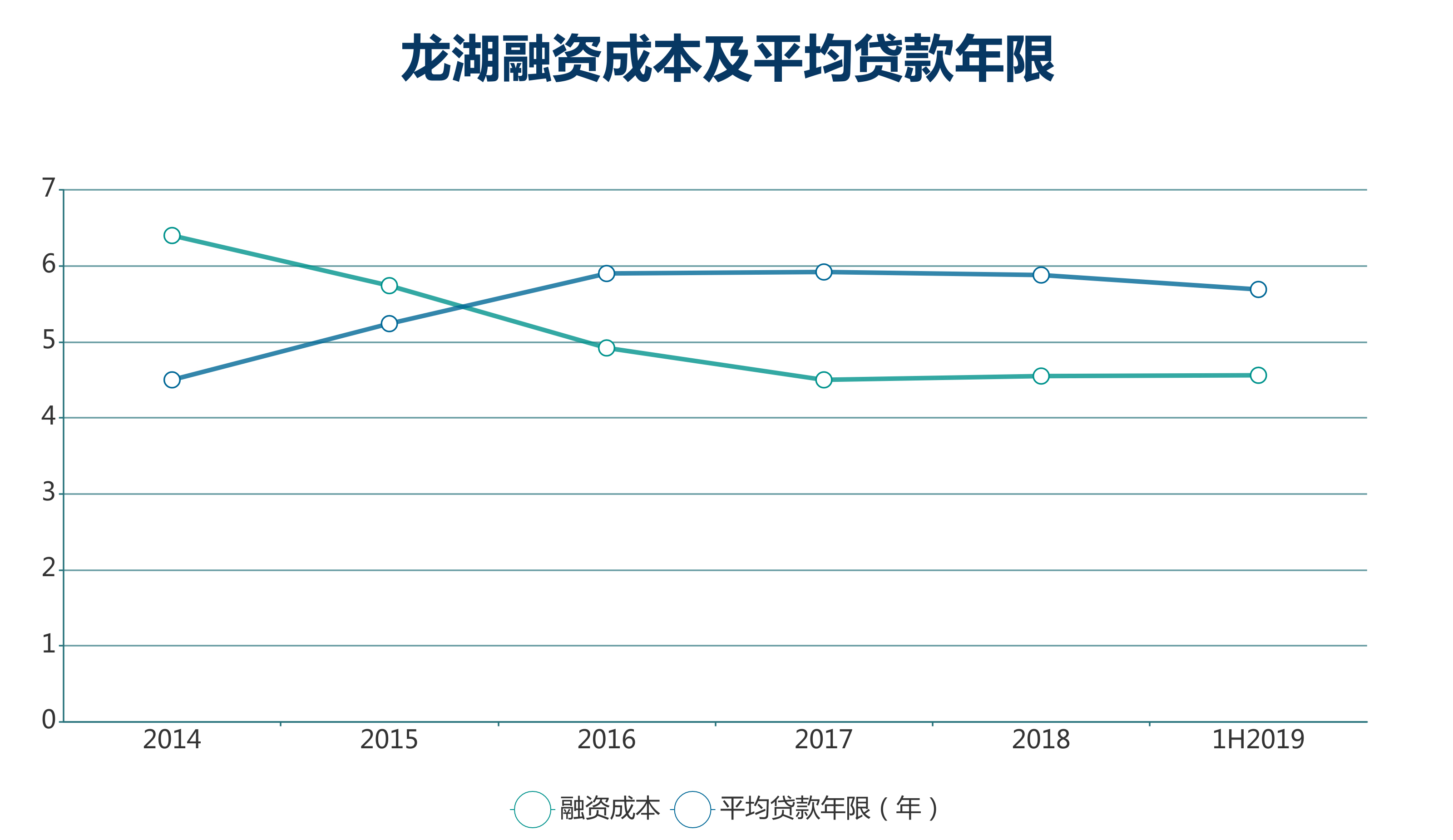 在不斷完成融資同時,龍湖的債務(wù)結(jié)構(gòu)一直處于較為安全合理的區(qū)間。綜合來看,龍湖只要發(fā)債,融資期限都比較長。2014年至2018年,龍湖平均貸款年限為4.5年、5.24年、5.9年、5.92年、5.88年,上半年債務(wù)平均年限進一步穩(wěn)定至5.69年。
