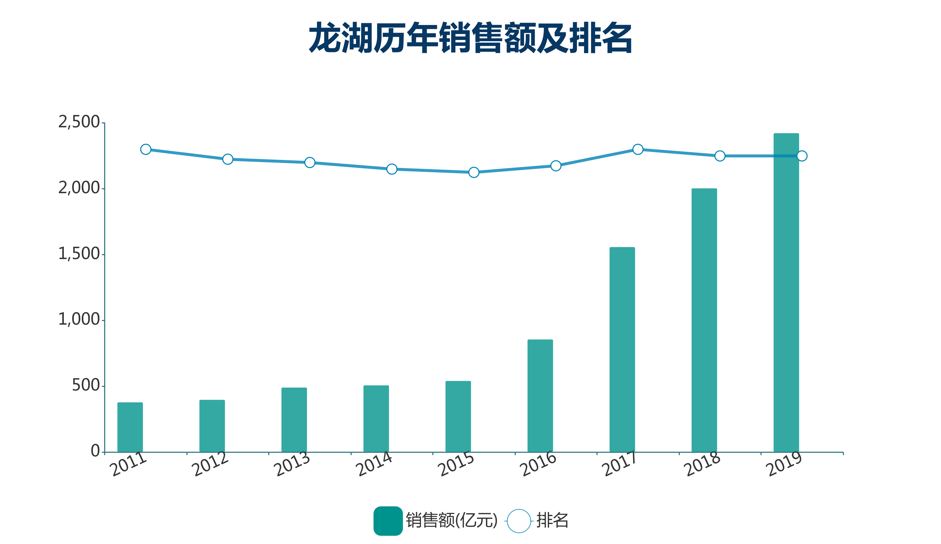 直至2017年,龍湖以82%的增速達標千億,并重回“前十”。2019年,龍湖將目標銷售額定為2200億元,與2018年的2006億元相比,增長幅度為9.7%,這被業(yè)內(nèi)認為過于保守。