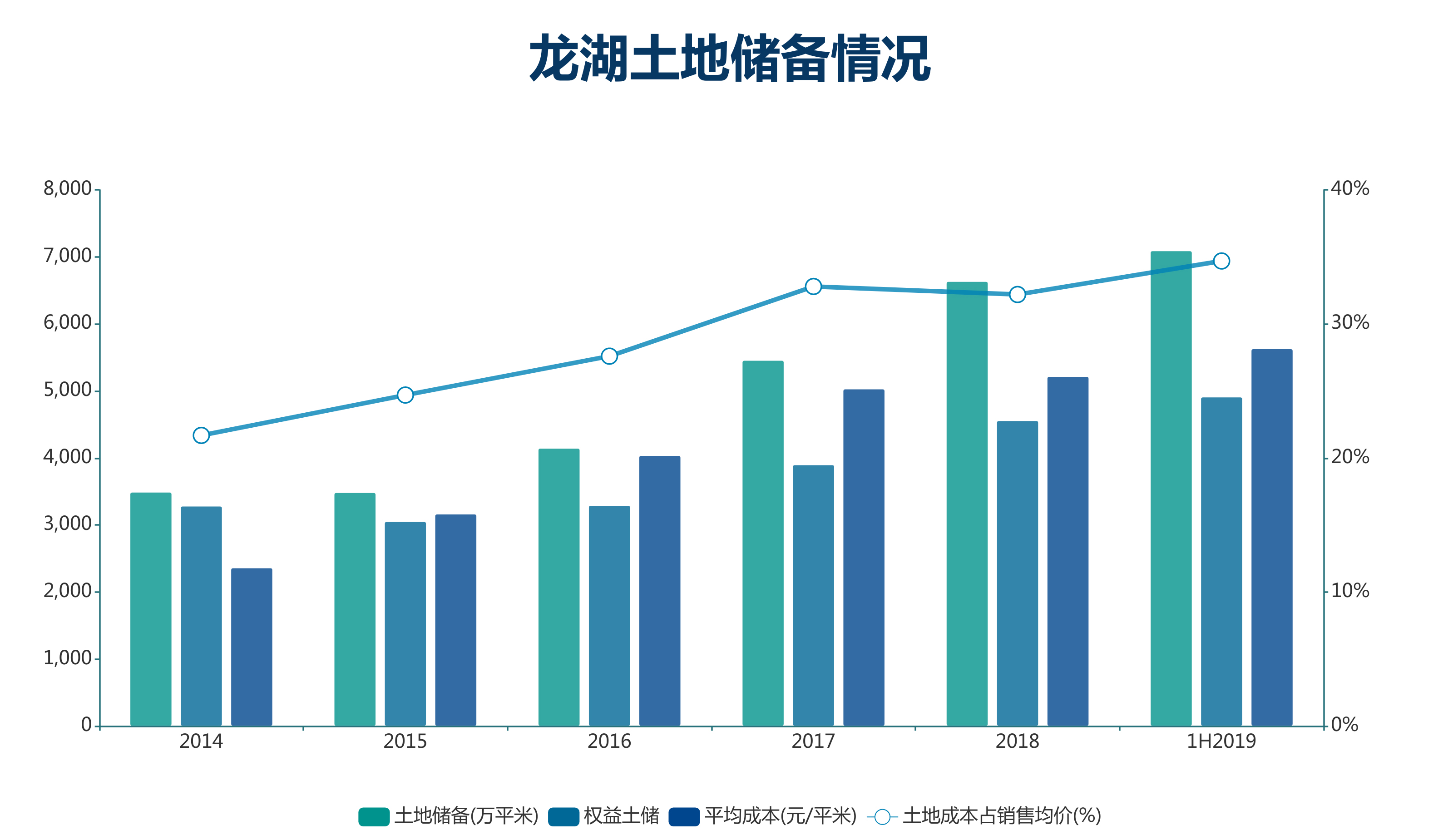 截至6月底,龍湖土地儲備合計7093萬平米,權(quán)益面積為4911萬平米,土地平均成本為5632元/平米,為當(dāng)期簽約單價的34.7%。