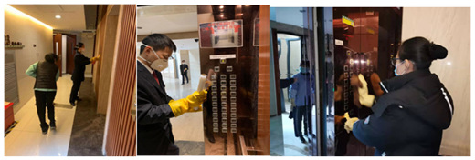 物業(yè)管家每天每隔兩小時對所有電梯按鍵進(jìn)行貼膜更換,大堂門把手及經(jīng)常觸碰到的按鈕等公區(qū)位置進(jìn)行消毒處理,減少隱患。持續(xù)加強(qiáng)大堂、樓層、地庫等公區(qū)定時消毒保潔,地庫定時開啟抽風(fēng)系統(tǒng);嚴(yán)防每一角落的安全隱患,確認(rèn)消毒工作無死角。