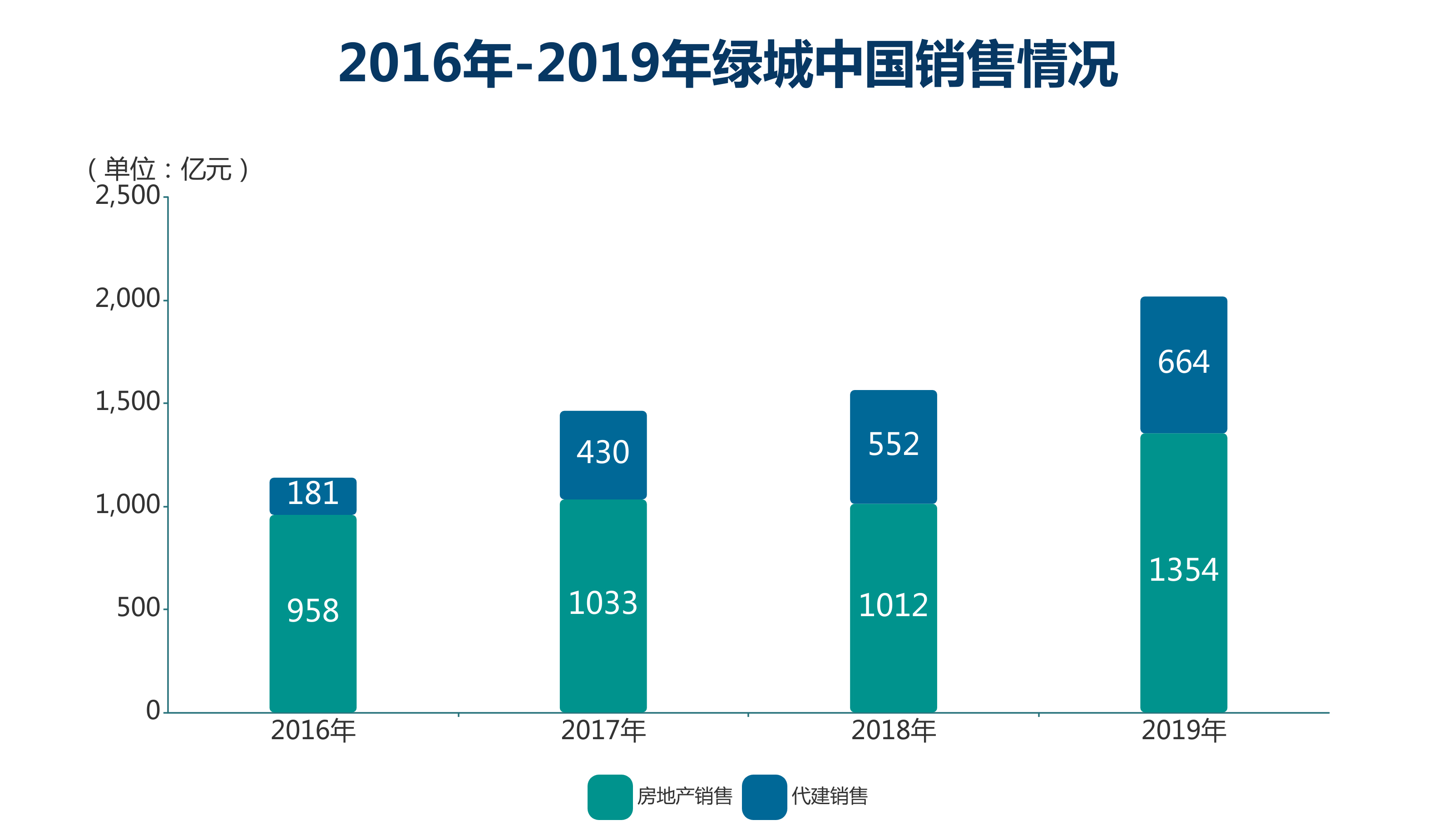 一方面,拿地能力差最直接反應(yīng)在綠城的銷售規(guī)模。2016年到2019年,綠城用了整整三年才完成從1000億到2000億的跨越,其中還包括大量代建業(yè)務(wù)的銷售貢獻(xiàn)。