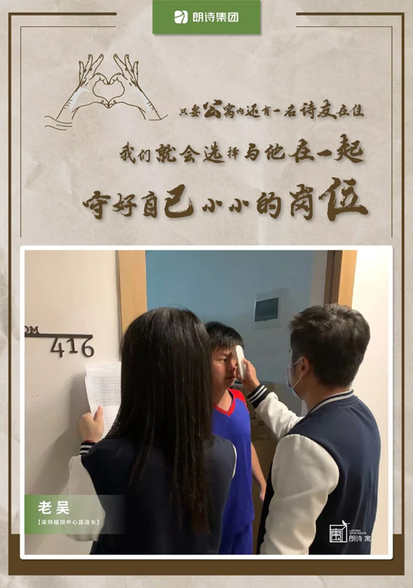 朗詩集團(tuán)旗下長租公寓品牌——朗詩寓,同樣有一群年輕人在以別樣的方式默默地為抗疫做最大的努力。廣州、深圳作為兩個(gè)人口流動量大的一線城市,防控形勢嚴(yán)峻,在保護(hù)租客健康和回家團(tuán)圓的兩難情況下,那些買好高鐵票的店長和管家們又是如何選擇的呢?下面帶大家看看春節(jié)期間發(fā)生在朗詩寓廣深區(qū)域的故事。
