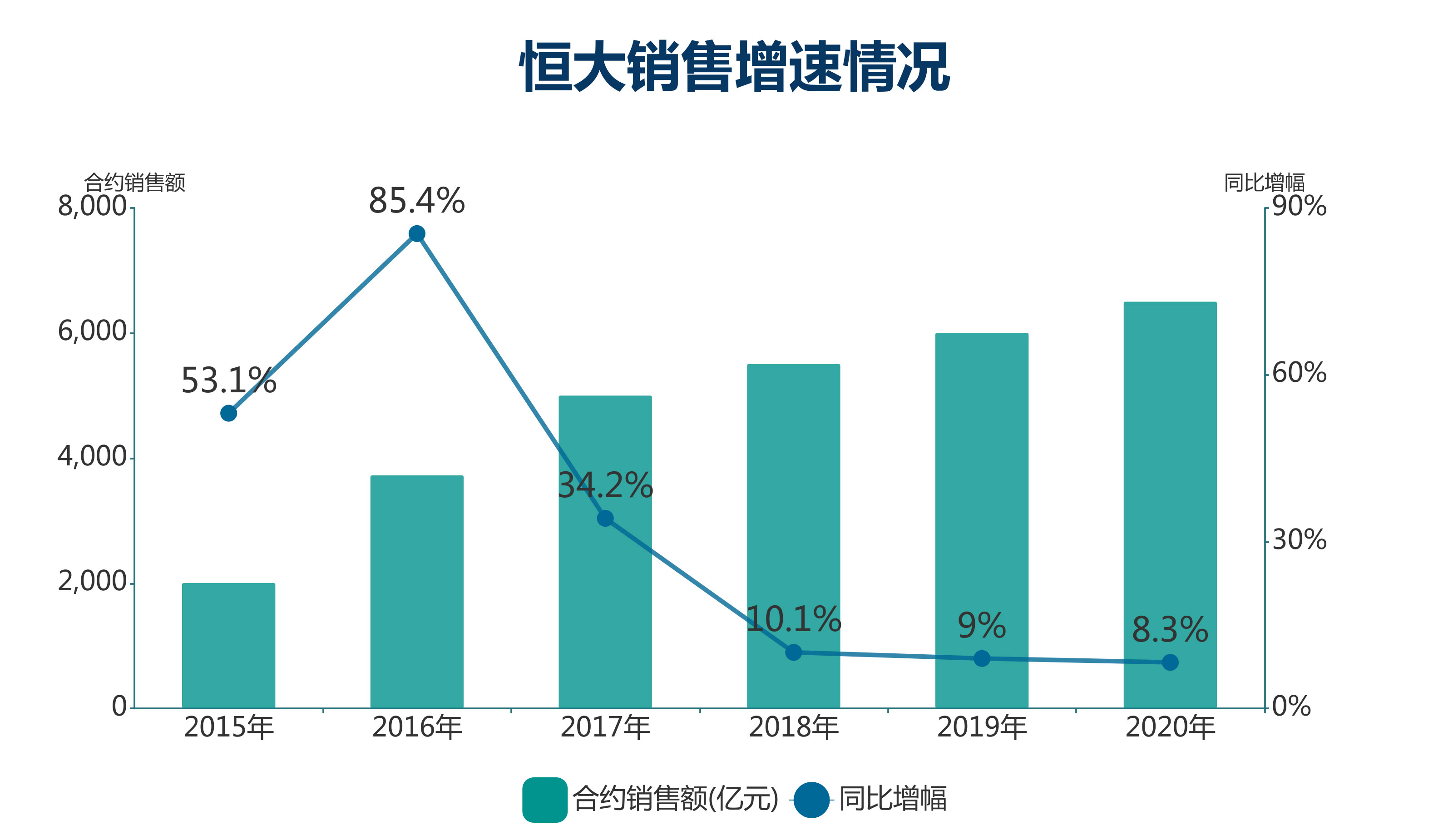 這是恒大第二年將增長(zhǎng)率維持在10%或以下,按最新披露,該公司2020年銷售目標(biāo)為6500億元,較2019年銷售額上漲約8.1%。