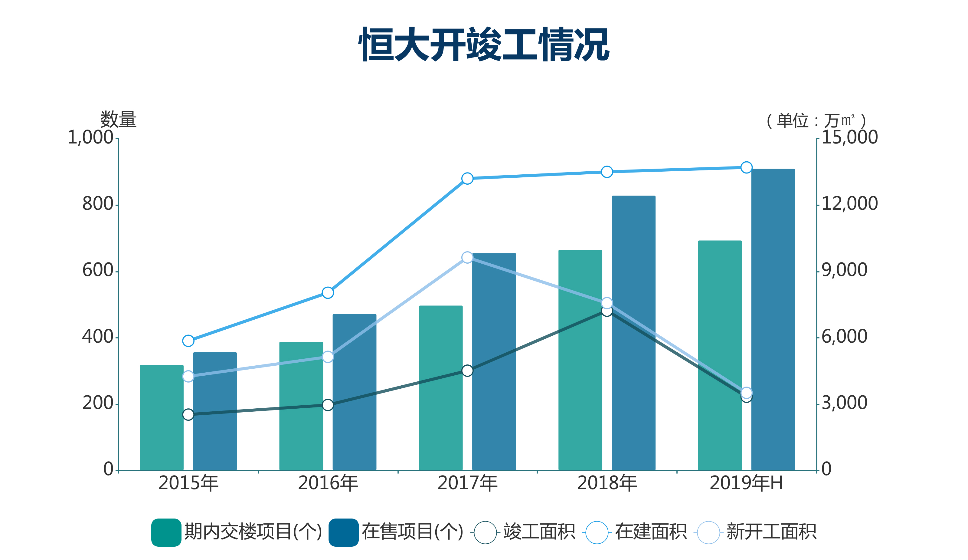不過,結(jié)轉(zhuǎn)面積的下降可能也是恒大自主選擇的結(jié)果。“上半年略微停止一下降負(fù)債的速度。”夏海鈞在2019年中期業(yè)績(jī)會(huì)上對(duì)投資者說:“我們手握現(xiàn)金是等待機(jī)會(huì),大批小企業(yè)可以收并購(gòu)。一旦機(jī)遇完成,負(fù)債率降低到合理水平。”