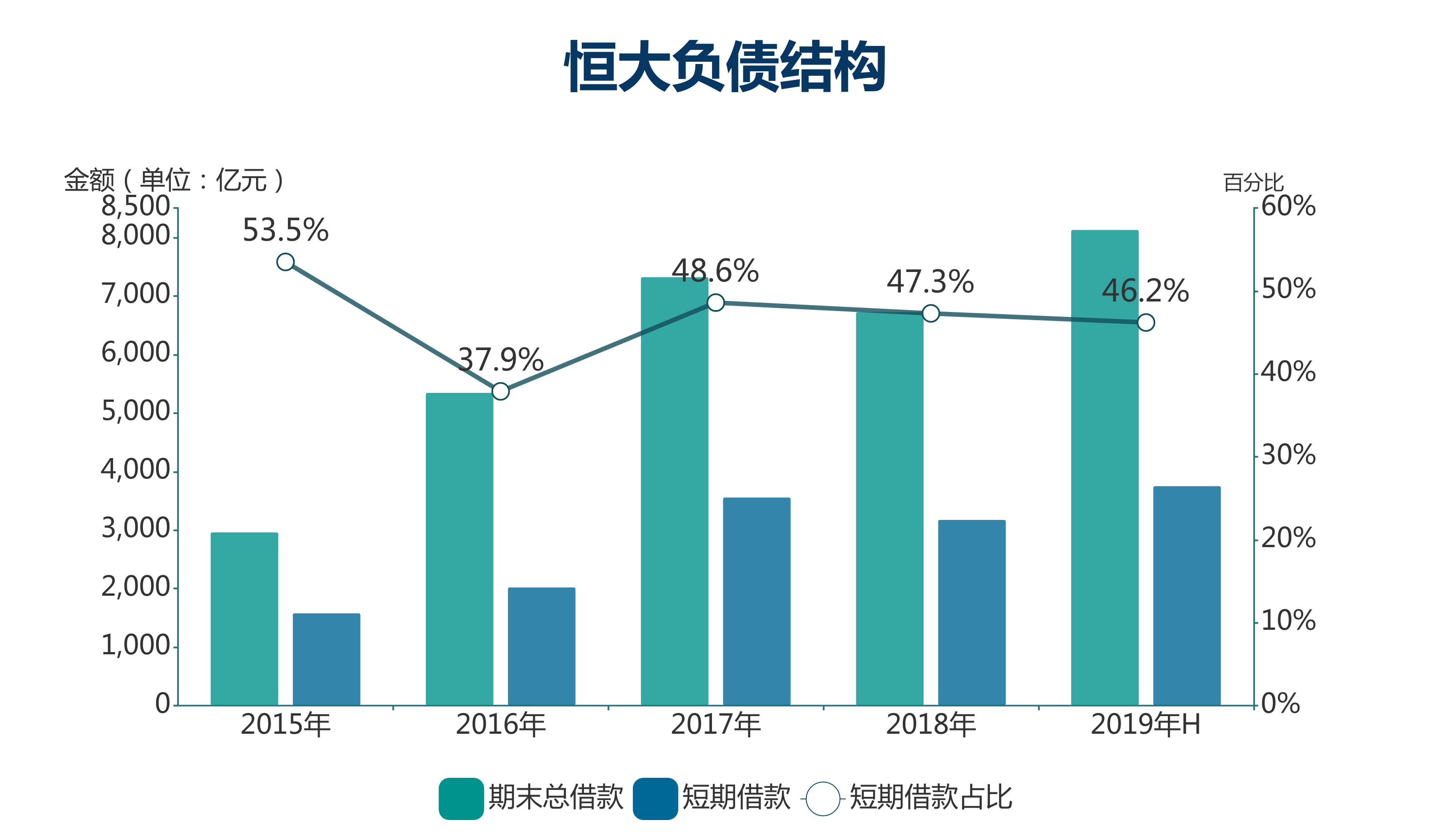 根據(jù)數(shù)據(jù),截止到2019年中期,該公司的短期借款占總債務(wù)比46.2%。