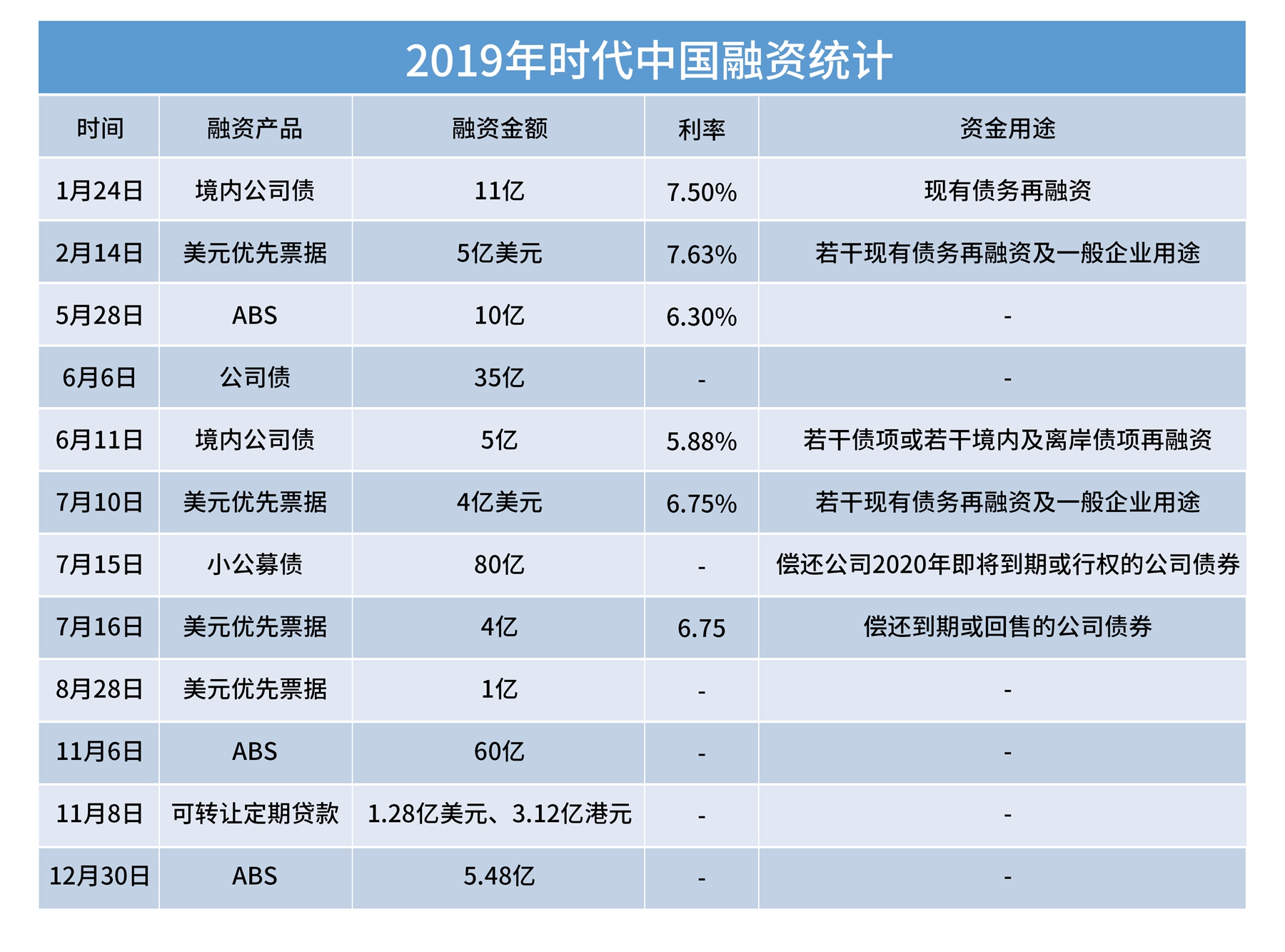 另一方面,時代中國于6月份開始連續(xù)發(fā)債,資金用途均為新債抵舊債,融資品種則包括美元債、小公募債、ABS、境內(nèi)公司債等,其中安全性較大、周期較長的美元債是發(fā)行最頻繁、數(shù)量最高的。