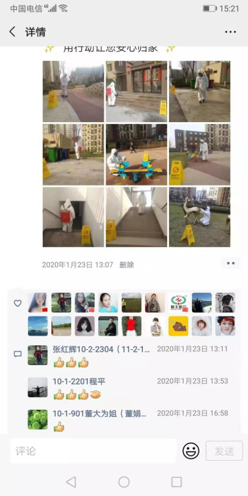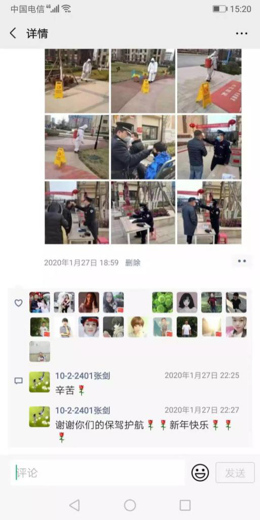 從1月下旬到現(xiàn)在,陽光城的物業(yè)服務(wù)工作,仍保持著高效無懈怠的運轉(zhuǎn):每日2846臺電梯的消毒以及提供一次性按鍵手紙的配套服務(wù);92個社區(qū)的公共部位日均1-2次消毒;26006人次/日的外來人員測溫登記;1075戶隔離人群的送菜送貨上門……這些繁重的工作,均由已正常到崗的4250名物業(yè)工作人員主動放棄休假,一力承擔(dān)。此外,陽光城也一共發(fā)布了360余篇宣傳文案,發(fā)放了數(shù)以十萬計的紙質(zhì)防疫材料,并出動1500多人次對社區(qū)工作予以協(xié)助。在這個過程中,陽光城的物業(yè)團隊,也涌現(xiàn)出了許許多多的模范員工,如福州SOHO項目的秩序維護員連德財,用“連比帶畫”阻攔了隔離名單上的外籍業(yè)主;再比如在疫情“重災(zāi)區(qū)”武漢的售樓部留守工作人員易軍,挺身而出,主動攬下巡視責(zé)任;身有8個月身孕卻依舊為業(yè)主奔走大半個南寧,堅持為業(yè)主采購防護用品的談麗華……
