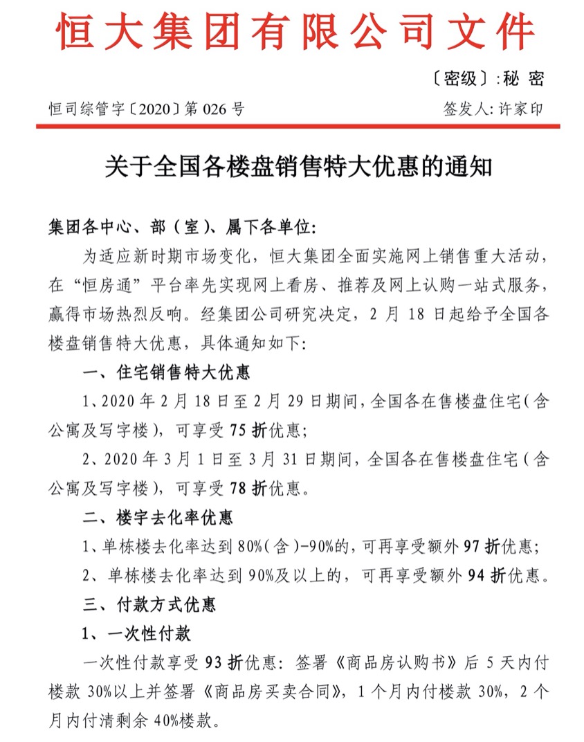 可恒大并不滿足,再次祭出大殺器:2月18日啟動其歷史上力度最大的一次優(yōu)惠讓利,全國樓盤75折特大優(yōu)惠。