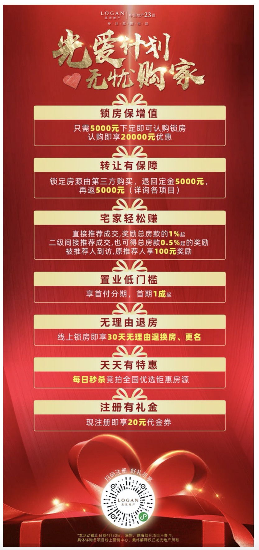 除了以上的優(yōu)惠政策之外,小到注冊“龍光寶”的舉動,也能享有20元代金券。不得不說,這一套優(yōu)惠禮包的細化程度之深,讓人很容易為之所動。