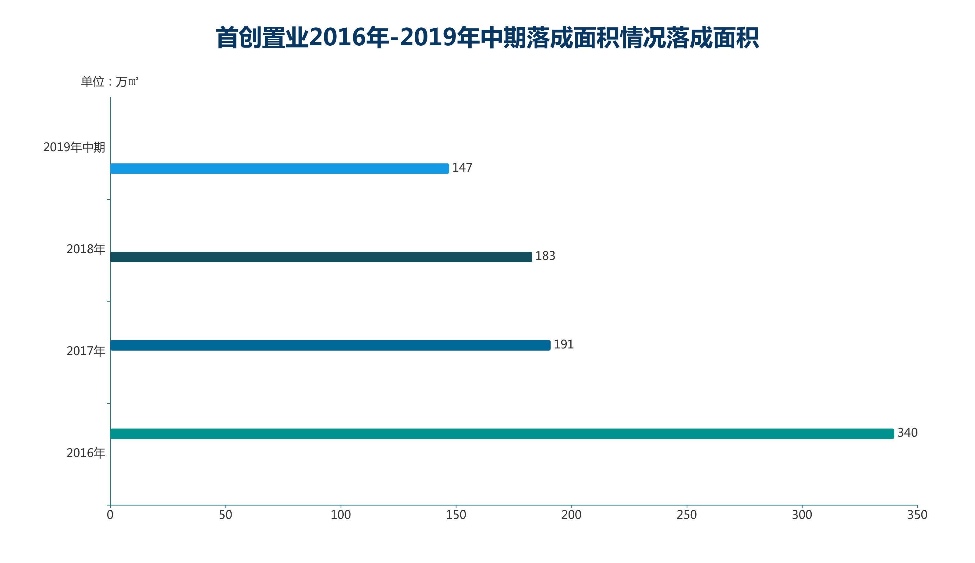 落成面積方面,首創(chuàng)置業(yè)前三年均同比收縮,2016年落成面積為340萬平方米,2017年、2018年分別同比下降43.82%、4.19%,對(duì)應(yīng)落成面積為191萬平方米和183萬平方米,2019年中期同比上升72.74%至147萬平方米。