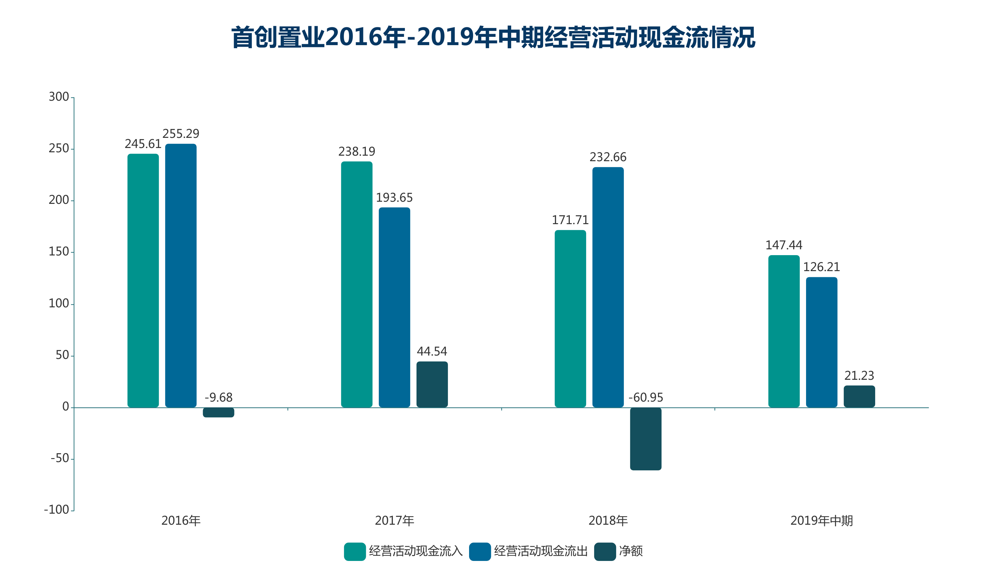 但在近三年多落成面積不增反縮的情況下,經(jīng)營(yíng)活動(dòng)產(chǎn)生的現(xiàn)金流對(duì)于補(bǔ)充首創(chuàng)置業(yè)擴(kuò)張資金的貢獻(xiàn)變得更加有限。2017年,首創(chuàng)置業(yè)經(jīng)營(yíng)活動(dòng)現(xiàn)金凈額為44.54億元,到了2018年則下降為負(fù)60.95億元。