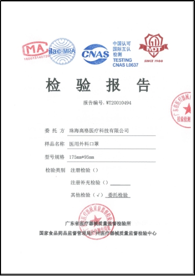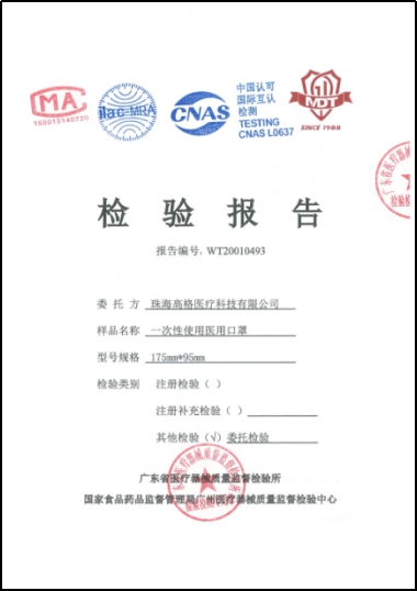 “高格”口罩順利通過了相關檢測,品質得到權威認證