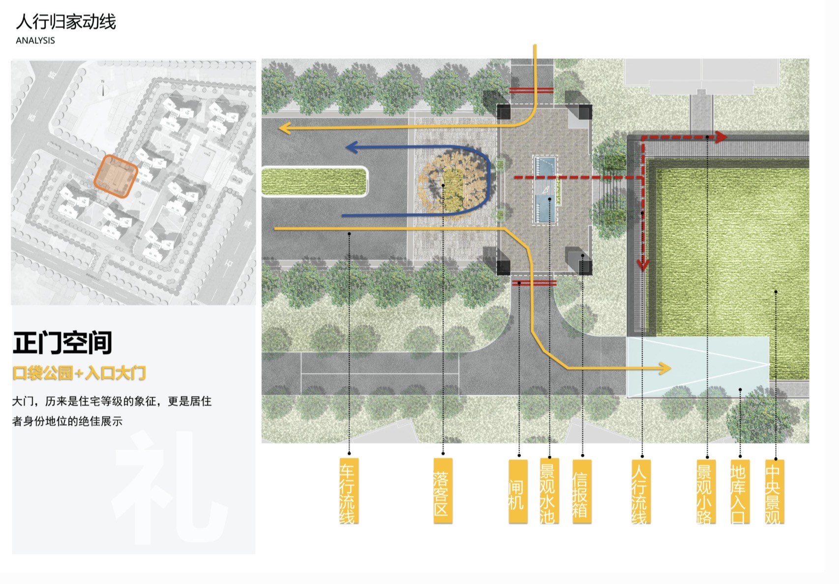 從古至今,大門(mén)都是身份及地位的表征,而入戶歸家也常有儀式感。試想住客于繁華街市中歸家,走過(guò)前廳,邁向后苑,步履方寸間的入戶體驗(yàn)?zāi)芙o人最為直觀的住宅認(rèn)知。力高在空間規(guī)劃中融入禮制思想,儀式化入口空間。智能化免接觸式社區(qū)大門(mén)的設(shè)置,更是在疫情面前倍感安全。