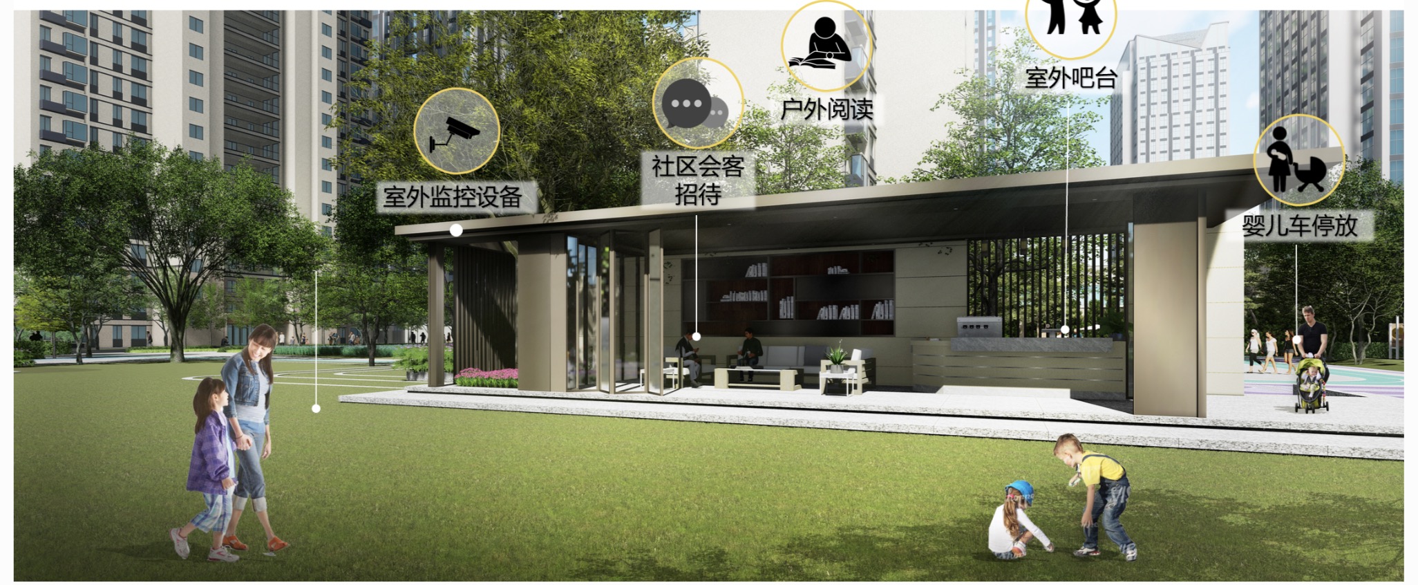 中國(guó)傳統(tǒng)文化里,和諧的鄰里及人際關(guān)系是良好生活應(yīng)有之義。力高在空間規(guī)劃里,戶外空間規(guī)劃中打造有社區(qū)多功能會(huì)客廳。街坊鄰居在進(jìn)入社區(qū)后能在這里的公共客廳攀談聊天,并設(shè)有嬰兒車(chē)的存放處,關(guān)懷備至。