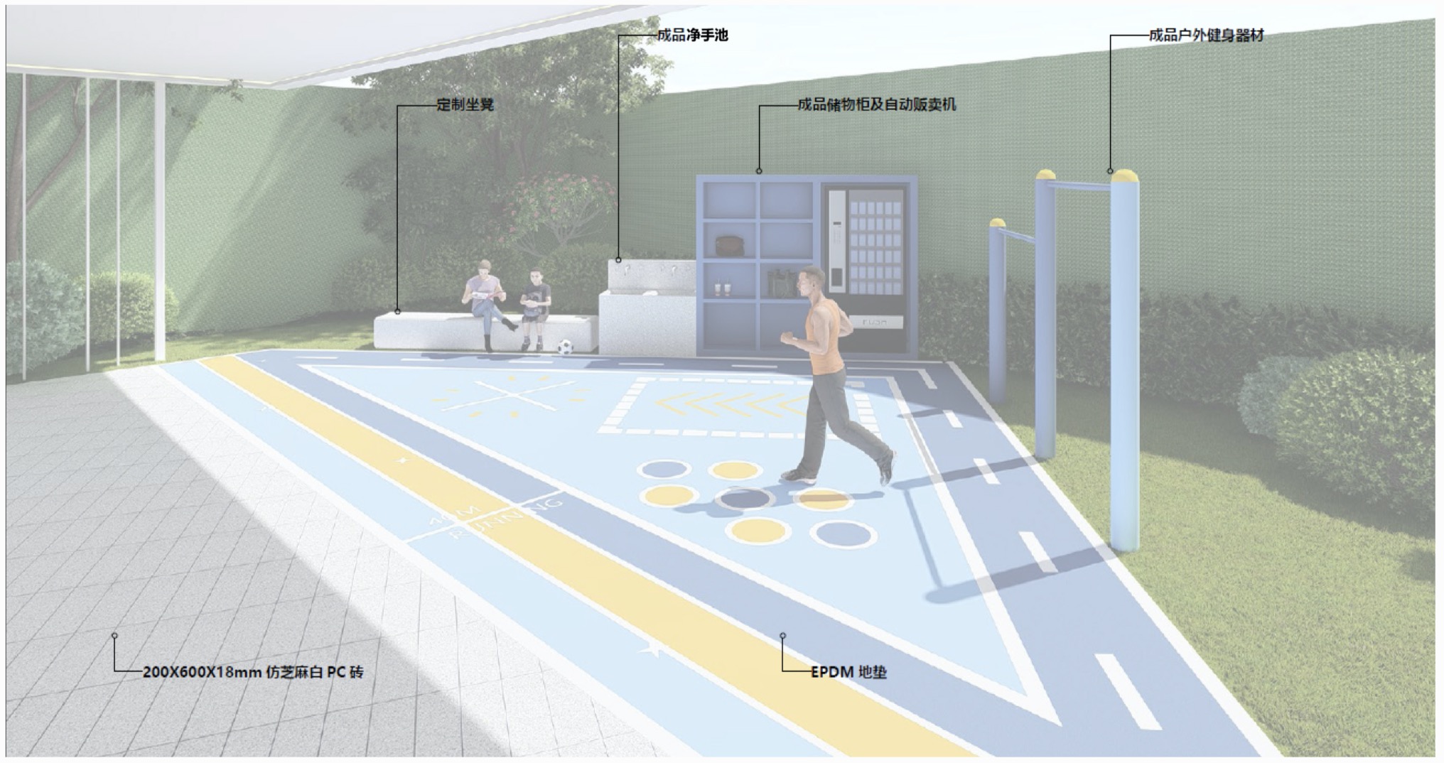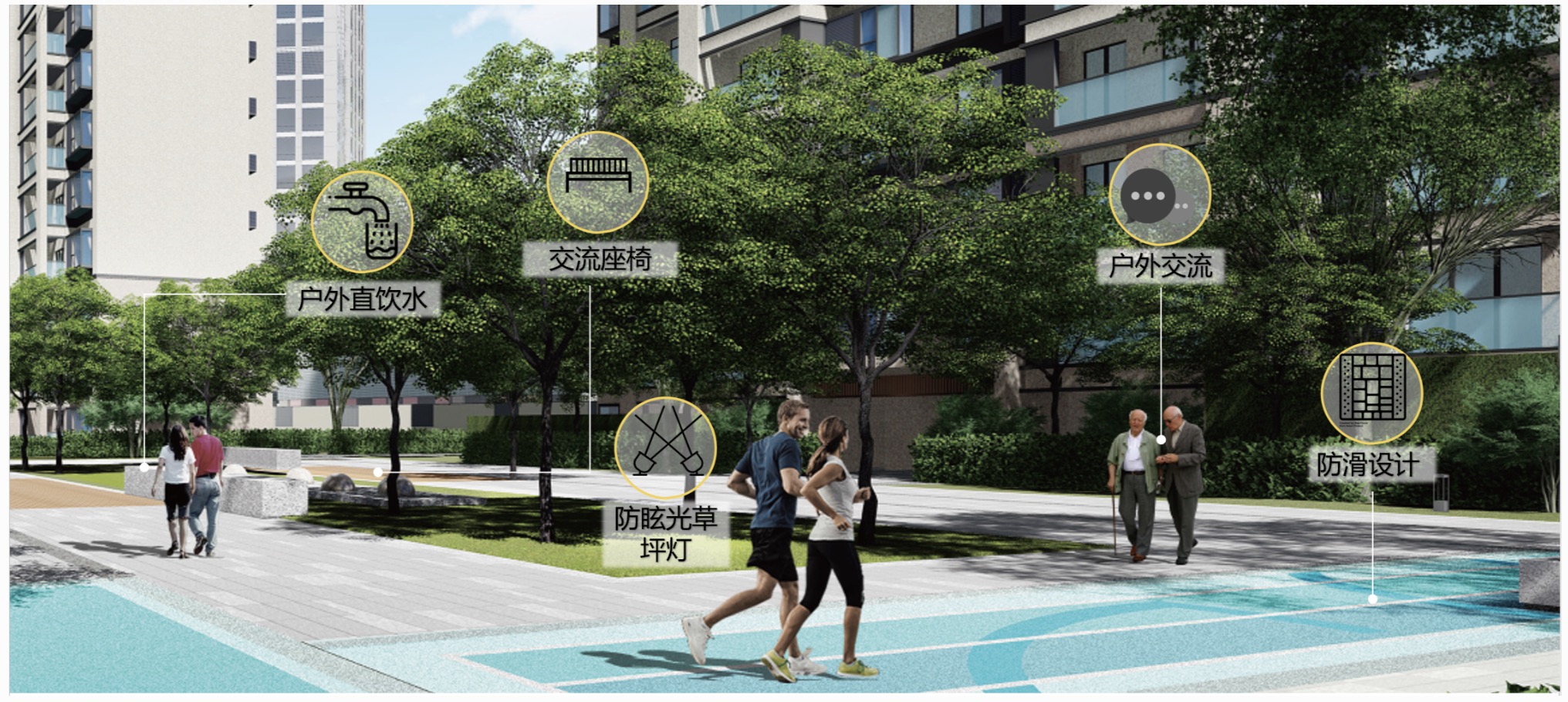 力高在空間規(guī)劃上試圖為全年齡段住客打造理想生活空間。對(duì)于精力充沛的年輕人,配置全面的健康跑道,包含健康加油站,和具備多項(xiàng)技術(shù)細(xì)節(jié)的健康跑道,滿足住客的運(yùn)動(dòng)需求。