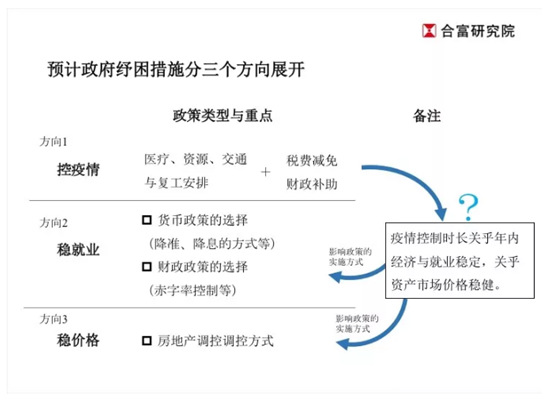 預計政府紓困措施分三個方向展開:“控疫情”+“穩(wěn)就業(yè)” + “穩(wěn)價格”